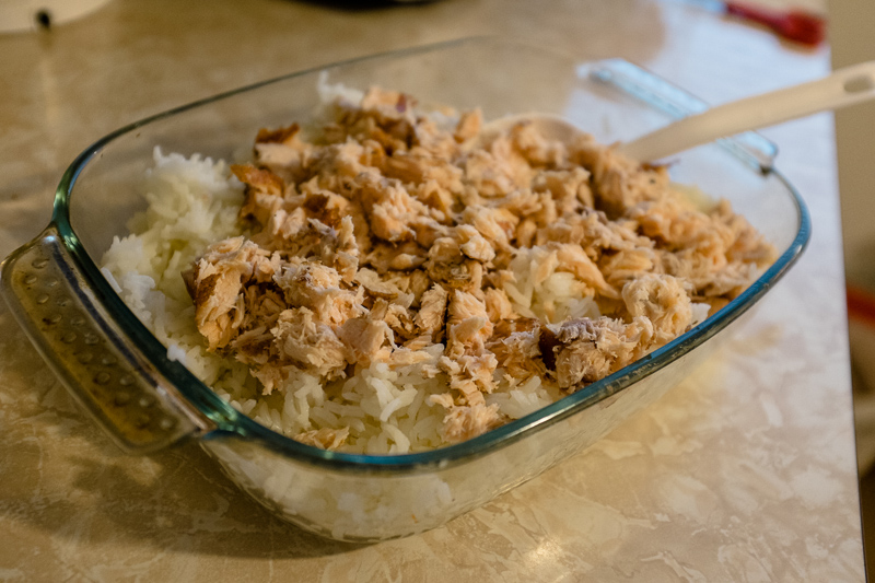 Keitin riisit vähän vahingossa aika kypsäksi, joten oli tärkkelystä niin, ettei sidosaineeksi tarvinnu lisätä kananmunaa. Jos käytät kovin irtonaista riisiä, käytä puolet kanamunasta täytteeseen, ja puolet voiteluun. Sekoita siis kaikki täytteet ainekset jäähtyneinä, ja käy taikinan kimppuun.