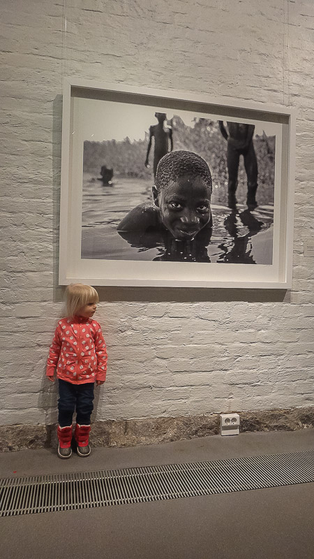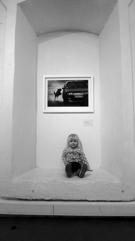 Otimme toisen museon haltuun, kun pörräytimme autolla Salon Veturitalliin. Siellä valokuvaaja Juha Metson Tunteella liikkeellä – Emotion in Motion retrospektiivinen näyttely. Upeita kuvia. Mustavalkoset vaan aina vetoaa muhun. Helmin näkövinkkelistä näyttely oli yhtä kuin tilaa ottaa pikku spurtteja, kivoja ääniä ilmastointiräppänöistä, portaita, penkkejä ja syvennyksiä. Valokuvista bongattiin kissa, koira, kukko, vauva, pyörä ja lehmä – näin muutaman mainitakseni…