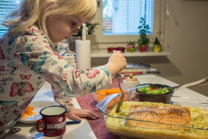 Nyt sitten tein elämäni ensimmäisen soijarouhelasagnen ilman hitustakaan jauhelihaa. Ja yllättävän hyvää tuli: lapsetkin söi, ja Radek erehtyi ihan kysymään ”eikö tässä ole lihaa?” Eli aika hyvin, sanoisin.