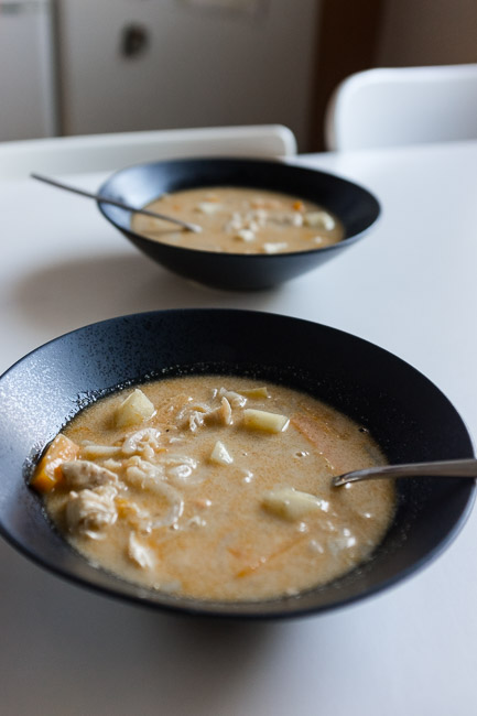 (iso ruokalusikallinen sulatejuustoa, tai loraus ruokakermaa)